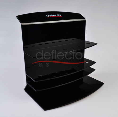 眼線筆展示架,采用優質亞克力材料,經雕刻、拋光、絲印等多種工藝制作而成。顏色的組合,獨特的造型塑造,更好的襯托出化妝品的高雅特性。